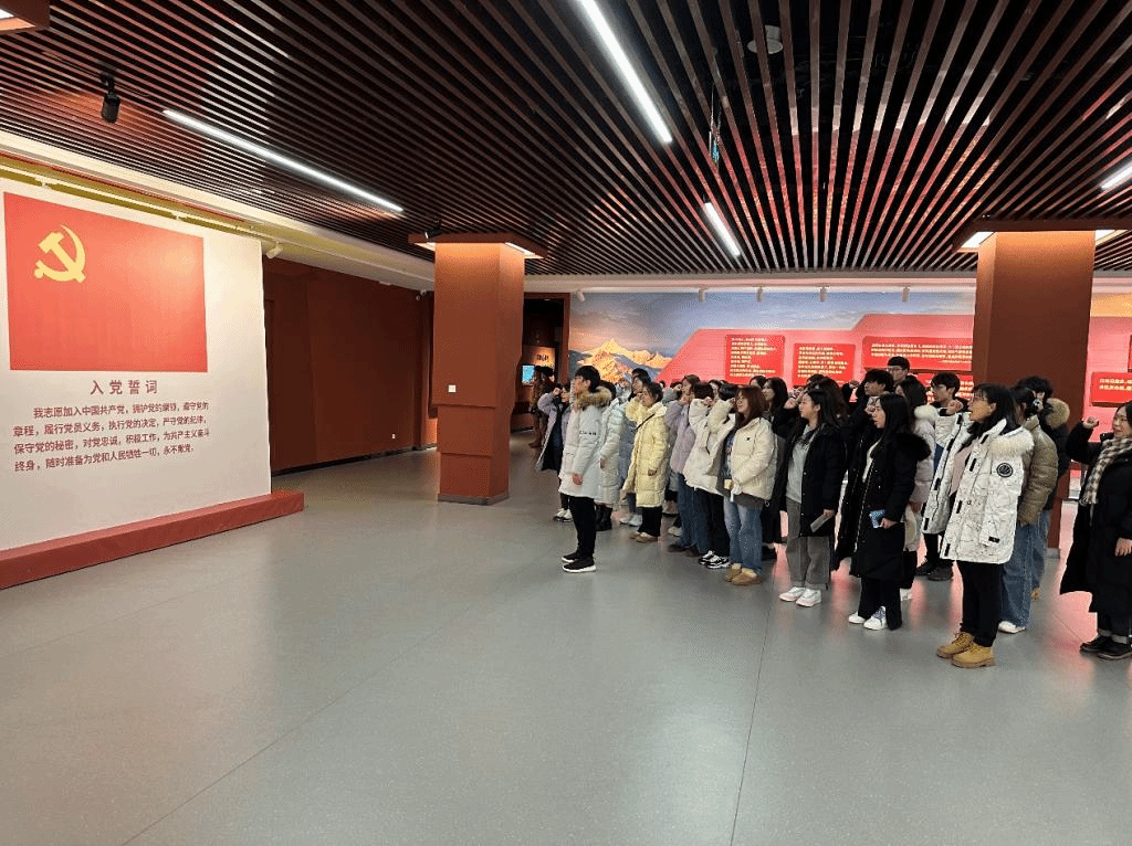 参观完毕,全体党员在党旗下重温入党誓词并郑重宣誓,立志要做有为青年、不忘初心使命,把小我融入大我,积极投入到中华民族伟大复兴的事业中。研究生党支部书记常飒飒带领全体党员深入学习了习近平总书记关于“东北全面振兴”的重要讲话精神,并在陈列馆内以“铭记历史、继往开来”为主线为全体党员同志展开了一堂特别的党课。