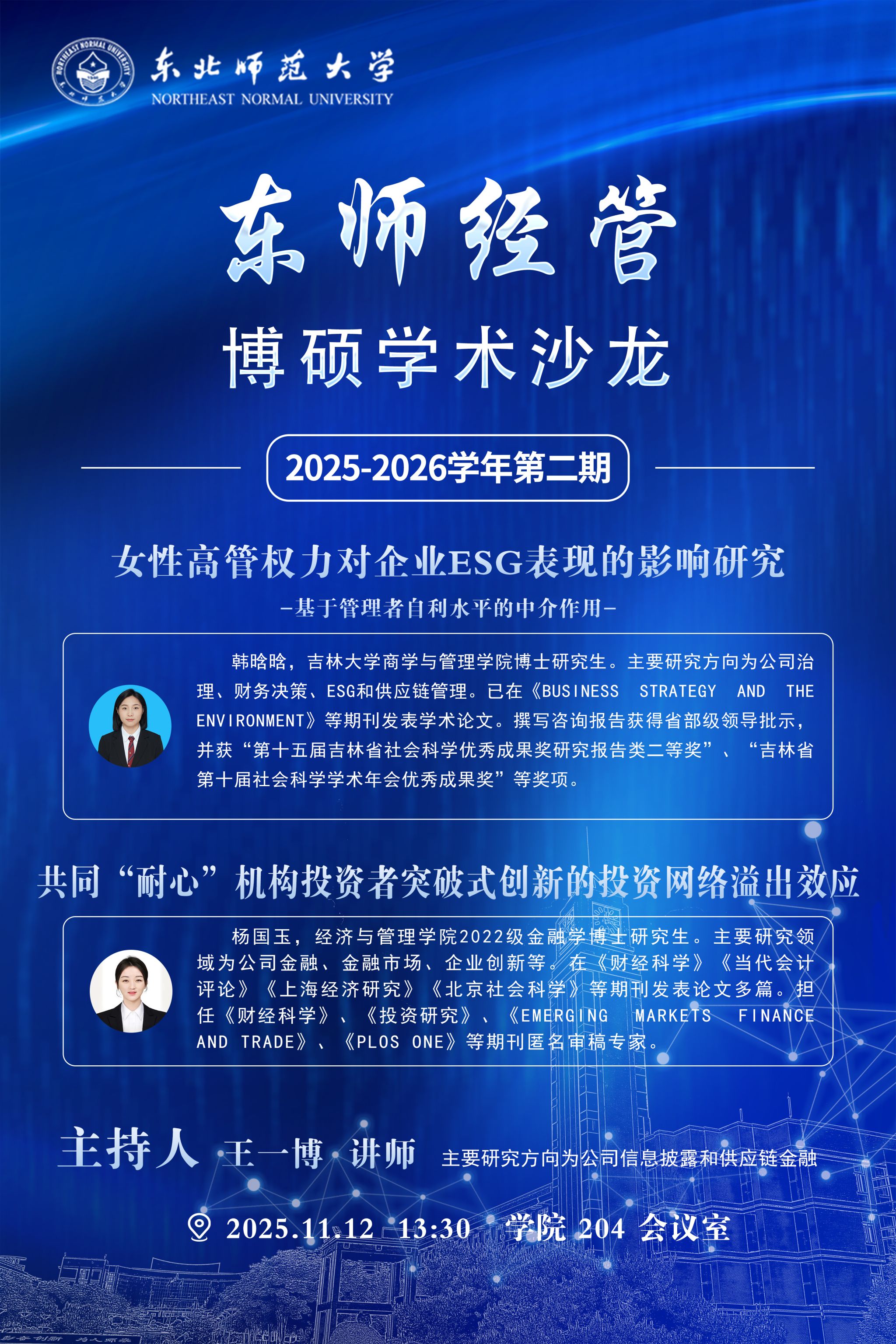 版权所有:东北师范大学经济与管理学院 | 地址:吉林 长春 净月大街2555号 | 邮编:130117 | 管理员邮箱: jjgl@nenu.edu.cn